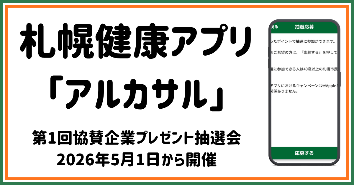 【アプリ】札幌健康アプリ「アルカサル」第1回協賛企業プレゼント抽選会 2026年5月1日から開催