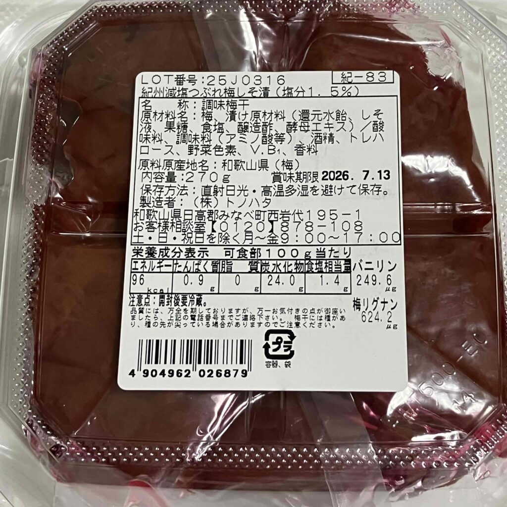 まずは、紀州みなべの梅 トノハタ つぶれ梅です。初めての購入だったので、はちみつ味としそ漬味のセットにしてみました。